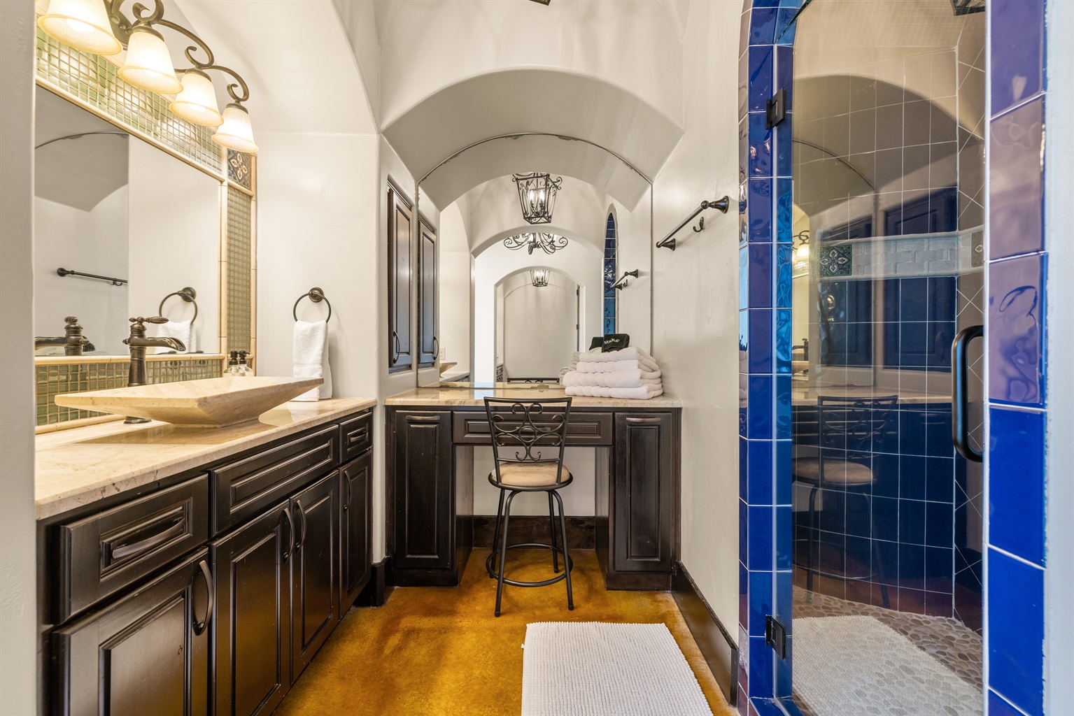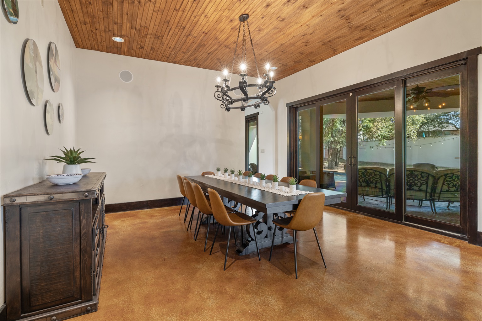 The gourmet kitchen is one of the home’s standout features. Outfitted with high-end appliances, generous prep space, and a seamless flow to dining and outdoor areas, it’s perfect for hosting group meals.